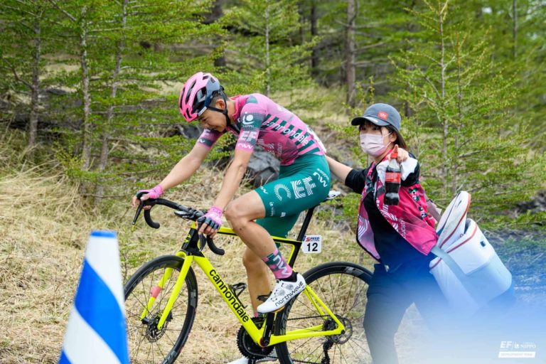 自転車ロードレースチームでの活動。レース中のドリンクや補給食の準備、コース上での手渡し、レース後のマッサージなど。